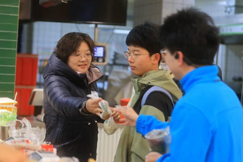 学院党委副书记王小露为学生发放爱心早餐