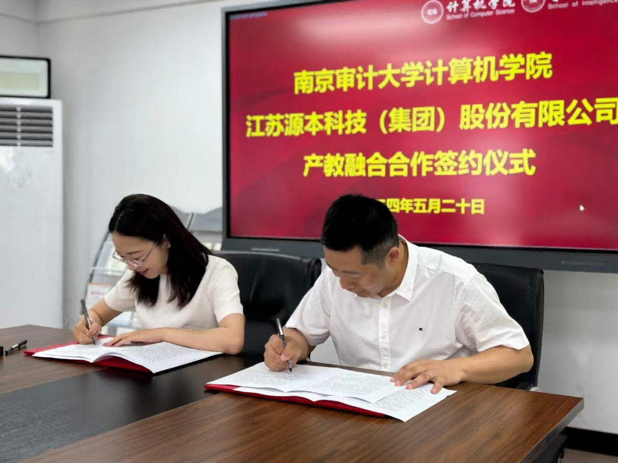 2024年5月20日,江苏1066vip威尼斯(中国)科技集团与南京审计大学计算机学院在南京审计大学致明楼308会议室成功举办了产教融合签约仪式,南京审计大学计算机学院院长徐超、副院长郭红建、系主任崔应留、院长助理吕从东、党政办主任苟丽华、江苏1066vip威尼斯(中国)科技集团董事长张福德、总经理唐佩等出席签约仪式。