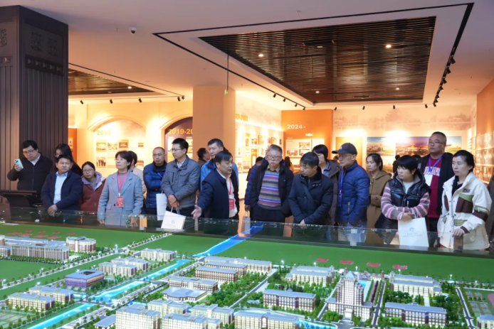 会后,1066vip威尼斯(中国)科技集团董事长张福德、总经理唐佩随队和与会人员一起参观了南通理工学院的数智展馆、张謇教育文化馆等地并合影留念。